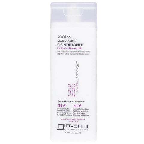 Giovanni's Root 66 Max Volume Conditioner is designed to maximise volume to fine, thinning hair. It contains Horsetail Extract that's rich in nutrients and high in silica to help strengthen thin, fragile hair. This salon-quality conditioner is vegan and cruelty-free, infused with natural botanicals. There are no harmful SLS, phthalates, parabens, mineral oil, propylene glycol or artificial dyes. Safe for coloured hair.
