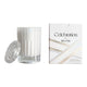 Dress up your home with this sophisticated White Musk & Warm Vanilla fragranced candle, housed in a deco-inspired glass jar with a glass lid. Made in Melbourne from natural soy wax with a burn time of up to 25 hours. The freshness of tropical citrus and leafy green notes create a warm, mossy floral heart that rests on a creamy base of sandalwood, Pacific vanilla, balsams and musk.