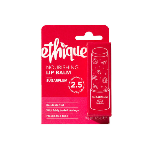 Ethique Sugarplum Nourishing Lip Balm is a tinted lip balm with a hint of peppermint. These heavy-moisture-hitters lock in hydration and leave your lips silky smooth, for longer. On application of Ethique lip balms, 94% of testers found an immediate improvement in the appearance of dry lips. Sugarplum is so good, you'll never lose the tube.