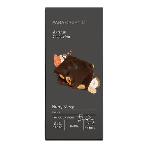 Learn morePana Organic Thins - Nutty Nutty is a delightful combination of 54% cocoa and roasted hazelnuts that create a rich, nutty flavour.