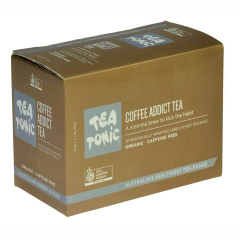 Learn moreTea Tonic Coffee Addict Tea has a coffee-like taste, yet is caffeine-free.