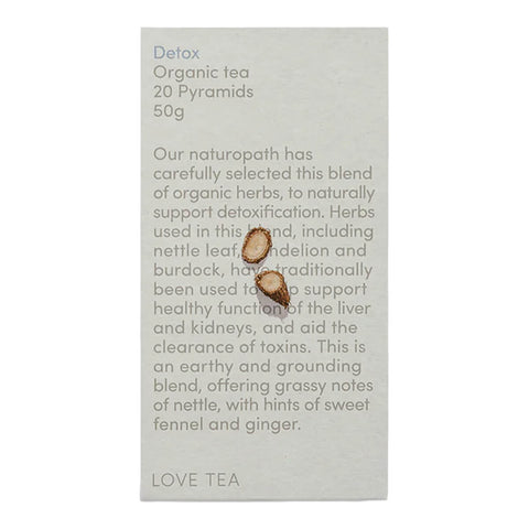 Learn moreLove Tea Detox Pyramid Tea Bags is a carefully selected blend of organic herbs designed to naturally support detoxification. Conveniently packed in pyramid tea bags for ease of use.