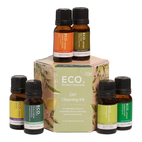 Learn moreECO. Modern Essentials DIY Cleaning Kit is a selection of pure essential oils to help naturally clean your home. This kit can be used in a variety of ways with a soap scum remover recipe and all purpose cleaner recipe included.