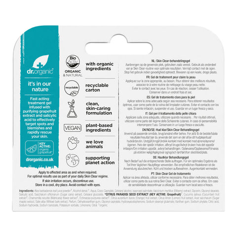 Learn moreDr. Organic Skin Clear Treatment Gel is a 5-in-1 skin treatment formulated to target spots, blemishes, and breakouts. Ideal for those with acne, problem skin, or occasional blemishes, it is rich in natural AHAs and salicylic acid to promote skin regeneration. Apply this gel to help leave the skin looking clearer, calmer, and revitalised.