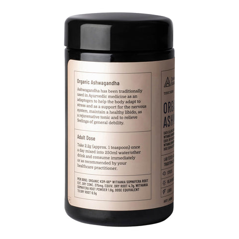 Featuring clinically studied KSM-66 extract, this adaptogen can maintain healthy sleeping patterns and aid recovery. It promotes healthy libido and supports the reproductive system. This remarkable, certified organic adaptogenic powder is a rejuvenative tonic. Ashwagandha (Withania somnifera) is a highly respected restorative tonic herb. Traditionally used in Ayurvedic medicine, it promotes balance in the body. It helps the body adapt to stressful conditions, supports the nervous system, and improves sleep. It is used to maintain a healthy libido, as a rejuvenative tonic, and to relieve feelings of general debility. It also promotes enhanced memory and cognitive function. Studies have found it promotes endurance, strength, muscle size, and muscle recovery.