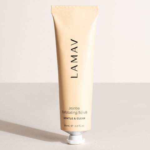 LAMAV's Gentle & Clean Jojoba Exfoliating Scrub gently exfoliates to leave skin smooth and polished, suitable for all skin types. Formulated with Bilberry Fruit Extract, Caviar Finger Lime and Jojoba Esters to exfoliate away dead skin cells and deeply nourish the skin for a radiant complexion.