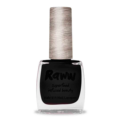 Raww Kale'd It Nail Lacquer - Healthy Is The New Black is a breathable, non-toxic, glossy black nail polish with a kale protein infusion.