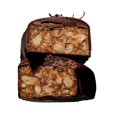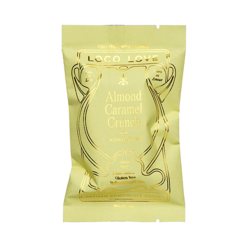 Learn moreLoco Love Almond Caramel Crunch Chocolate is the ultimate umami experience with the salty-sweet, chewy-crunch of toasted tamari almonds folded inside gooey almond butter caramel. Wrapped in our dark cacao, spiked with immune boosting and longevity tonic astragalus, and finished with a light garnish of brilliant blue edible cornflowers – a feast for every sense.