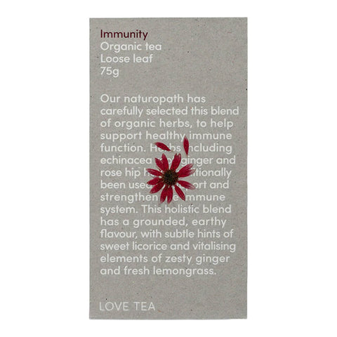 Love Tea Immunity Loose Leaf Tea is a blend of organic herbs carefully selected by a naturopath to help support healthy immune function.
