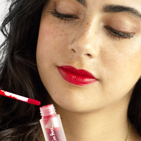 - Blend the tint quickly with a brush, one side at a time. For a deeper red, reapply another layer and blend well.