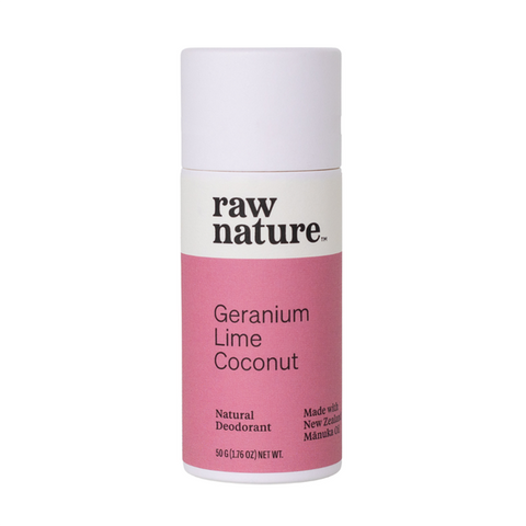 Raw Nature Natural Deodorant - Geranium & Lime is aluminium free, vegan and certified cruelty free. This is a sweet coconut and lime scent with a hint of vanilla.