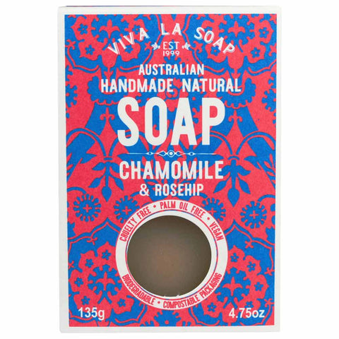 Learn moreViva La Body Natural Soap - Chamomile & Rosehip is a nurturing blend of antioxidant rich rosehip oil boosted with calming chamomile extract to give your skin a super gentle and soft wash. This low scent blend contains no fragrant essential oils or clays and is great for those with super sensitive skins.