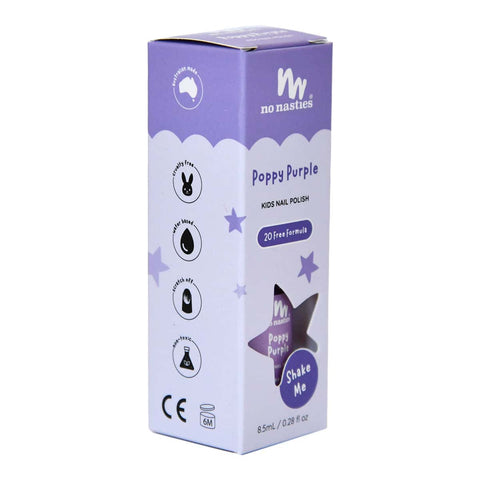 No Nasties Kids Water-Based Nail Polish - Purple is a fun, vibrant shade perfect for kids who have outgrown pink and fallen in love with all things purple. Specially designed "for play, not stay", this water-based polish is easy to apply, scratch off, and reapply for endless creativity without the need for harsh removers.