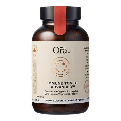 Learn moreOra Immune Tonic+ Advanced is a high-potency blend of tonic herbs, including organic astragalus and Siberian ginseng, combined with quercetin, zinc, vegan vitamin D3, and reishi mushroom. It supports immune function, helps prevent illness, relieves fatigue, and boosts vitality during recovery.
