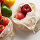 Open the drawstring and fill the bag with your fruit, vegetables, nuts, or seeds. Pull the drawstring to close the bag securely. Use the bag to carry your produce while shopping or for storage at home. Wash regularly to keep it fresh and clean.