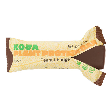 Learn moreKOJA Plant Protein Bar in Peanut Fudge is made with real peanuts and the perfect bar for anyone who wants to indulge in chocolate and nutty decadence without skimping on protein and quality ingredients.
