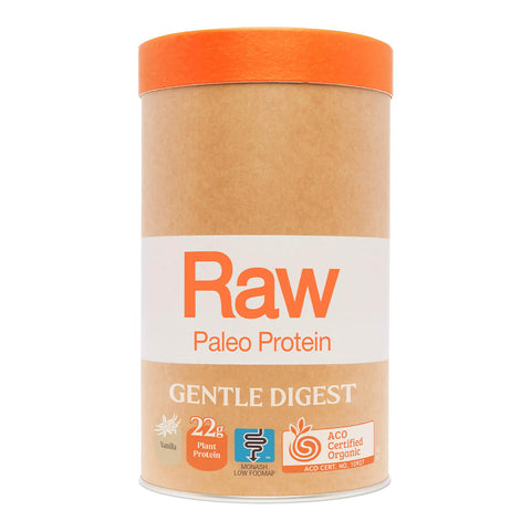 Amazonia Raw Protein Gentle Digest - Vanilla is a low FODMAP certified, delicious paleo-friendly blend that combines sprouted plant protein with fermented greens, seeds and vegetables.