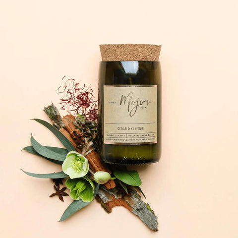 Mojo Candle Co.Reclaimed Wine Bottle Soy Wax Candle - Cedar & Saffron