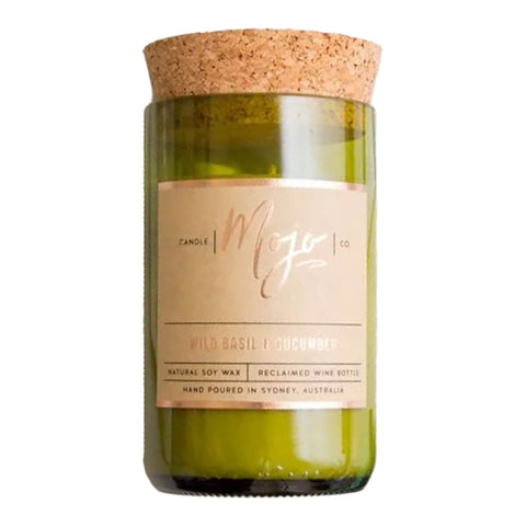 Mojo Candle Co.Reclaimed Wine Bottle Soy Wax Candle - Wild Basil & Cucumber