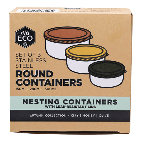 Learn moreEver Eco Stainless Steel Round Nesting Containers are ideal to use alone or inside a lunchbox to separate food.