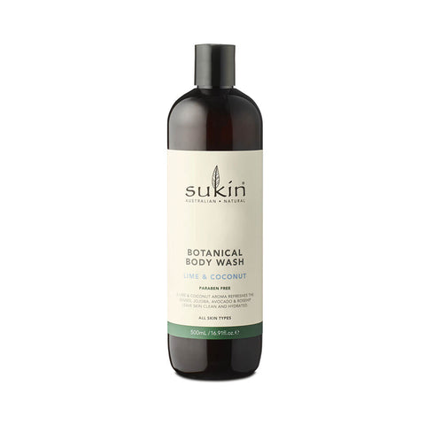 The Sukin soap-free Lime and Coconut Botanical Body Wash refreshes and stimulates the senses while leaving skin clean and fresh. Jojoba, Avocado and Rosehip Oils are combined to purify, hydrate and soften the skin while cleansing. With a calming combination of Chamomile and Aloe Vera, skin is left feeling soothed and lightly hydrated.