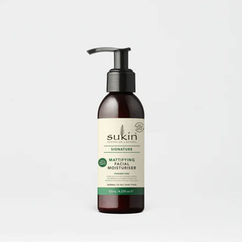 The Sukin Signature Mattifying Facial Moisturiser contains Rice Powder to absorb excess oil, leaving a silky no-shine finish on the skin.