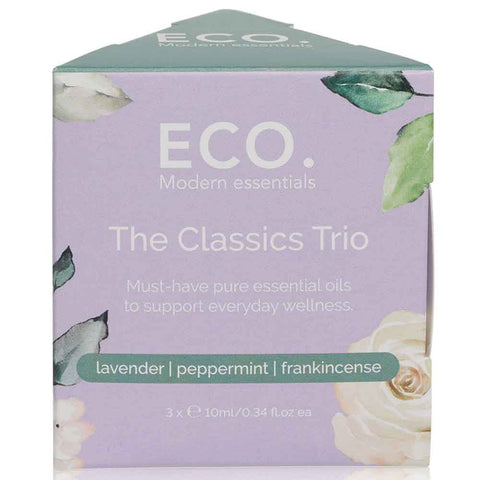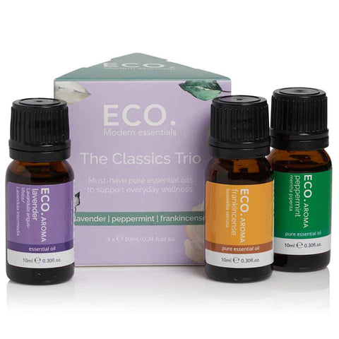 Learn moreECO. Modern Essentials The Classics Essential Oil Trio features three of their best-selling pure essential oils. A great starting place for anybody new to aromatherapy or the perfect replenishment trio. Versatile and most-loved, these pure essential oils can be used for a variety of purposes.