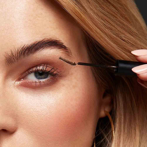 Starting at the base if the brow, comb hair into shape using featherlight strokes, mimicking the natural direction of hair growth. For lash use, start at the base of waterline and wriggle the brush through your lashes in long even strokes.