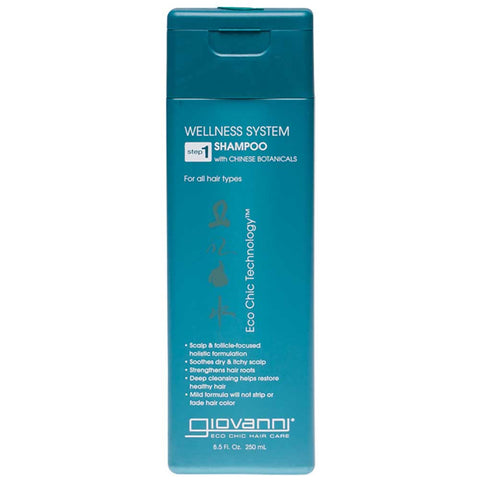 Giovanni's Wellness System Shampoo combines traditional Chinese Botanicals with Western ingredients to soothe a dry, itchy scalp. This shampoo strengthens the root and helps restore elasticity. With Panax Ginseng and Mulberry Fruit to deliver a powerful tonic to encourage shine and deeply hydrate. There are no harmful SLS, phthalates, parabens, mineral oil, propylene glycol or artificial dyes. Safe for coloured hair.